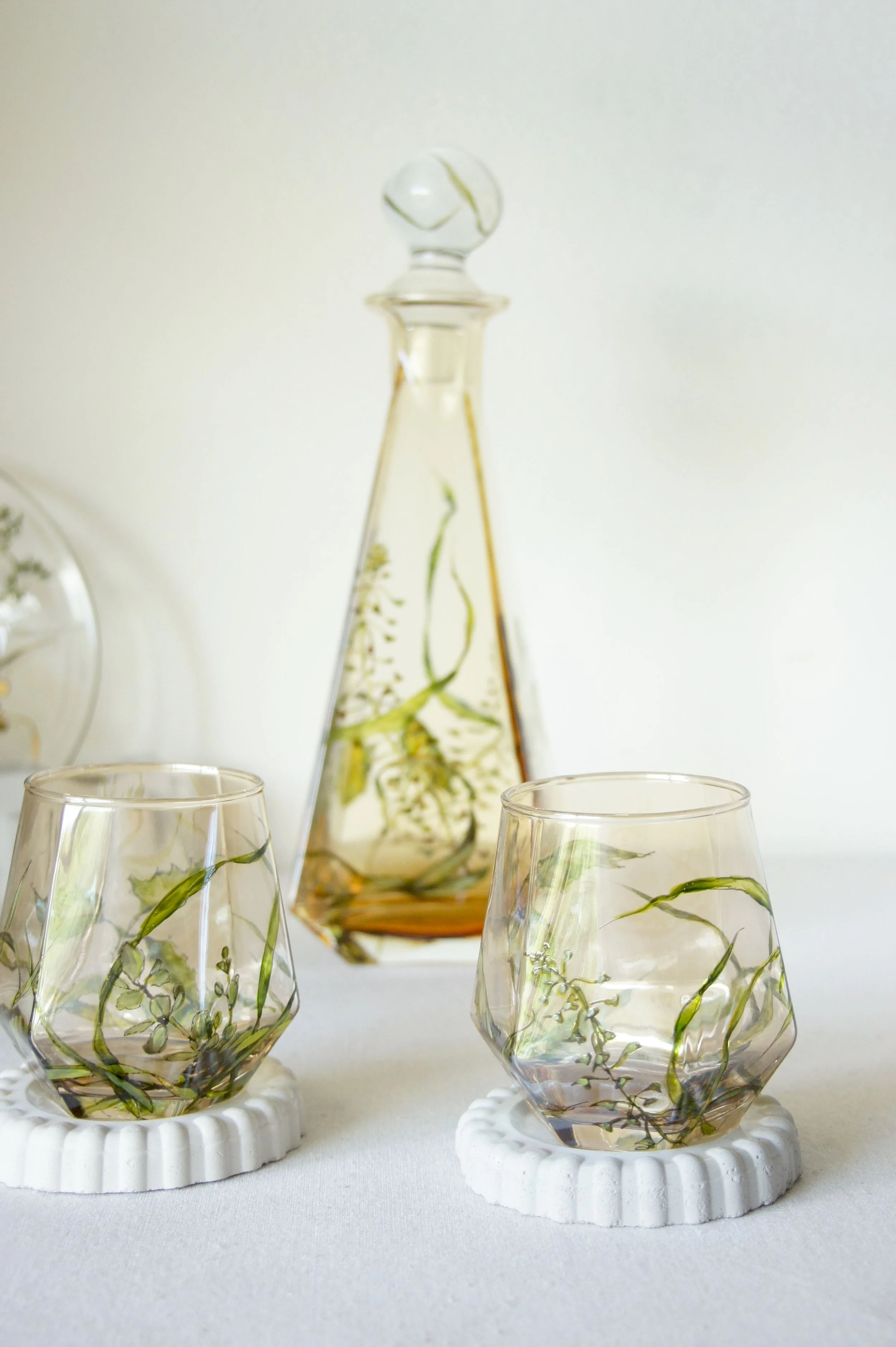 SHOP Categories: All Sculptural Lighting Lighting Hand Painted Tableware Outdoor Friendly Editions Hand Painted Tableware All Sculptural Lighting Lighting Hand Painted Tableware Outdoor Friendly Editions Hand Painted Floral Glass Plant Mister: Wildflower Collection $195.00 Hand Painted Glass Tea set with 2 cups, creamer and a honey pot - Herbal Plants $350.00 Hand Painted Coffee French Press set with 2 cups - Shrooms and Grass $275.00 Made-to-order Hand-Painted Amber Glass Decanter Set – Fields of Grass Design – Crystal Decanter with 2 Glasses – Botanical Barware Gift $280.00 Hand Painted Botanical Glass Bedside Carafe | Grasses and Thistle Sale Price: $170.00 Original Price: $190.00 Sale Floral Upcycled Glass Decanter Set: Astrantia Botanical Design $200.00 Glass Tumblers, Set of 2 - Astrantia Flowers | Botanical Collection | Made to Order $175.00 Green Tinted Glass Tumblers - Botanical Collection | Common Vetch $165.00 Red Glass Tumblers | Wildflowers $175.00 Amber Tinted Glass Tumblers | Wildflowers $175.00 White Glass Tumblers | Stinging Nettles $175.00 Glass Tumblers, Green, Set of 2 - Mushrooms and Grass | Botanical Collection $175.00 Double wall Glass Travel Mug | Cosmo Flowers - Botanical Collection $135.00 Glass Travel Mug | Shepherd's Purse and Daisies - Botanical Collection | Ready to Ship $95.00 Glass Travel Mug | Shrooms and Grasses - Botanical Collection $135.00